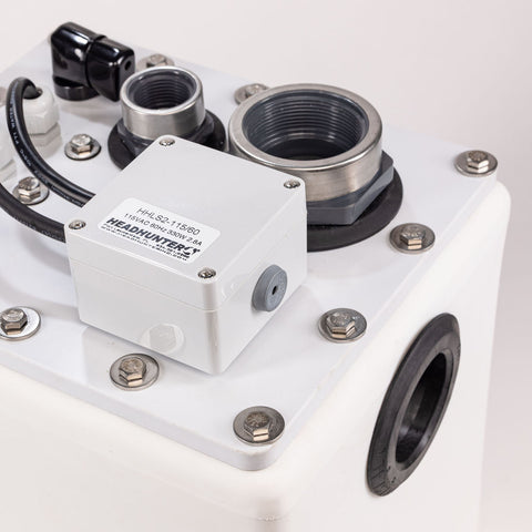SS fasteners. The system also includes a secondary, pneumatically operated high-level switch with normally open and normally closed connections to interface with our MO-4000 or a ship’s monitoring system.